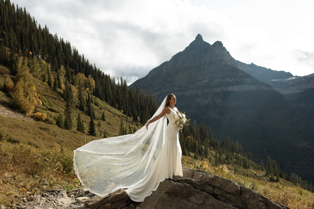 When it comes to eloping in Glacier National Park, timing can change everything. Sunrise often brings quiet trails and soft light that feels peaceful and private. Meanwhile, sunset can deliver dramatic skies and glowing reflections across the lakes. Seasonally, July and August offer accessibility but draw larger crowds. September feels calmer and brings beautiful color shifts. I help couples choose a time of day and time of year that aligns with their vision and energy.