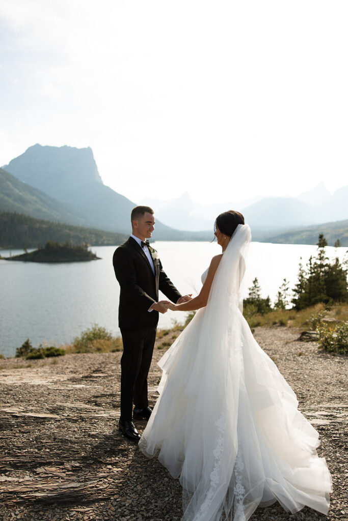 Sun Point is one of the most iconic ceremony locations in Glacier National Park, and once you are there, it immediately makes sense why. Since it overlooks the deep blue water of St. Mary Lake, the entire setting feels both expansive and peaceful at the same time.
