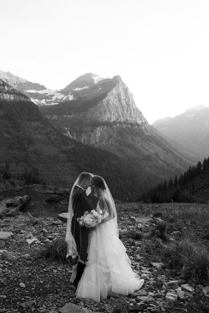 This Glacier National Park elopement was just the two of them, standing together with the mountains stretching endlessly in the distance. There were no guests and no distractions, which allowed them to fully settle into the moment. It felt like time slowed down in the best way. And honestly, that is what makes a Sun Point Elopement so special!